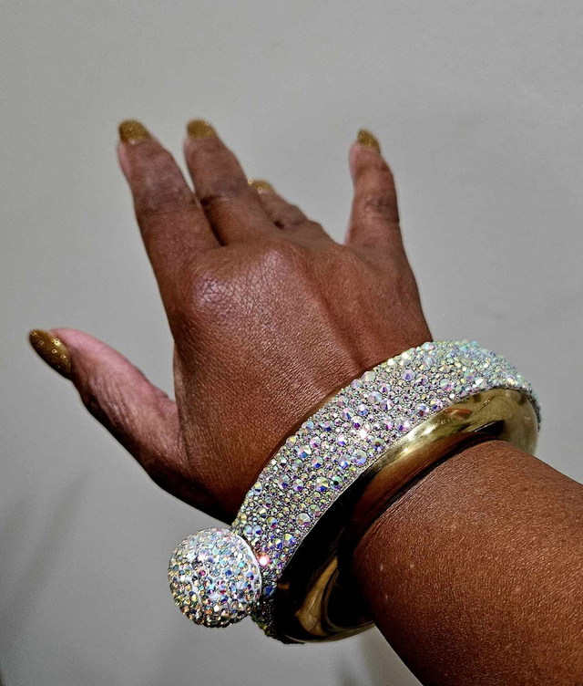 • YOU WILL GET, 1 Piece Of Gold Bracelet Flask Rhinestones Lid With Funnel