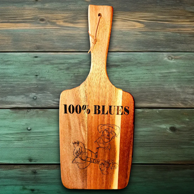 The Blues Man Tapas/Cheese Board is made of Acacia wood. Make cocktail time even cozier with a beautiful serving board. Great gift for a true blues lover! 42x17 cm.