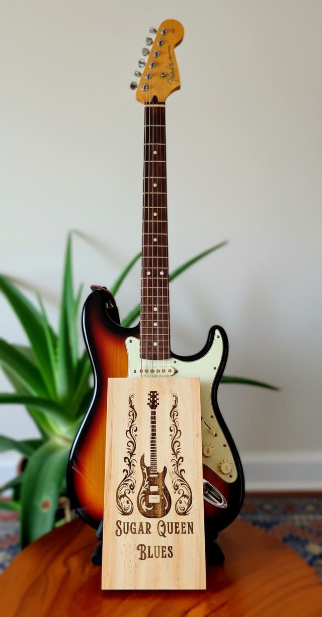 Sugar Queen's Guitar Display Stand has versatile use: Matching well with various items such as skincare products, plants, candles, perfumes, and jewelry, these wooden risers find versatile use in living rooms, bathrooms, kitchens, and beyond. Moisture-Resistant: Each wood riser is coated with wood wax oil, making it suitable for use in bathrooms and kitchens to hold soap, dishes, bottles, and other items. However, please avoid submerging the wood riser in water. The wood riser is meticulously hand-polished, featuring smooth edges. The natural wood grain ensures each piece is unique. The four feet at the bottom are equipped with pads to prevent scratches on the tabletop. Display stand only.