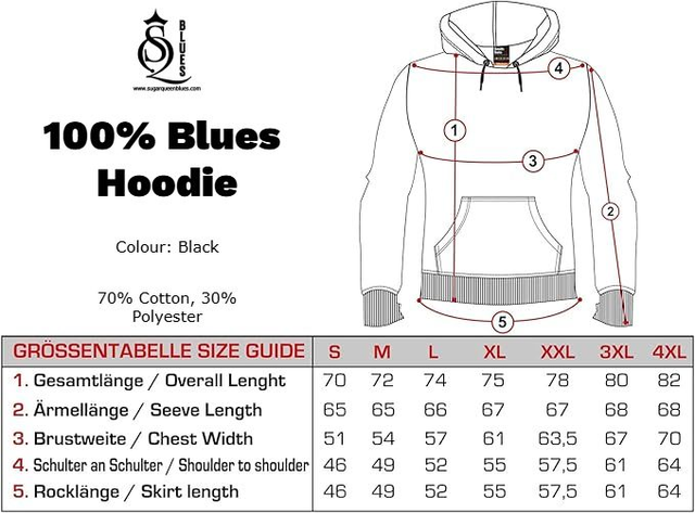 This heavyweight hoodie ensures comfort while sporting the 100% Blues logo!. The high-quality cotton blend and the kangaroo pocket keep you fit against the cold. This fashionable hooded sweatshirt with crew neck has long sleeves, so it can be worn as a tracksuit top or combined in a variety of ways for everyday wear. Whether with jeans or trousers, this hoodie always offers great comfort. 70% Cotton, 30% Polyester.