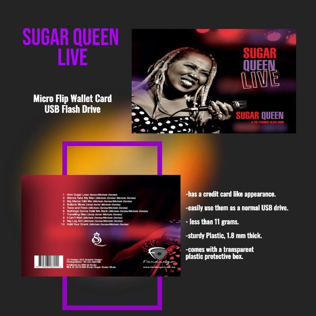 Listen to Sugar Queen LIVE CD on your USB business card flash drive is made from thin ABS plastic. Compatible with USB 2.0 ports (PC and Mac) includes a transparent box to protect your USB drive!