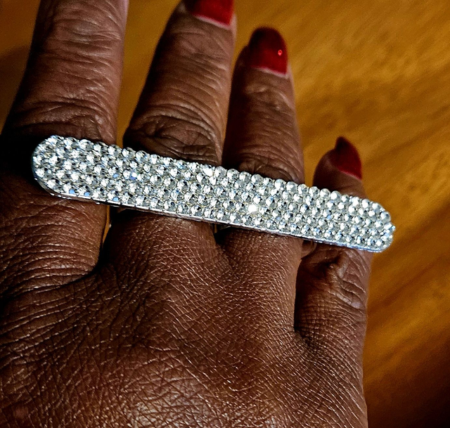 Sugar Queen's Bling Ring! The design of the two-finger ring is unique and stylish, making it an eye-catching fashion accessory. It covers two fingers and makes you stand out from the crowd at once. 1.2 x 7 cm.